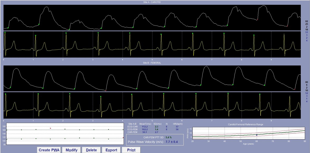 Below shows carotid-femoral artery pulse wave velocity data.